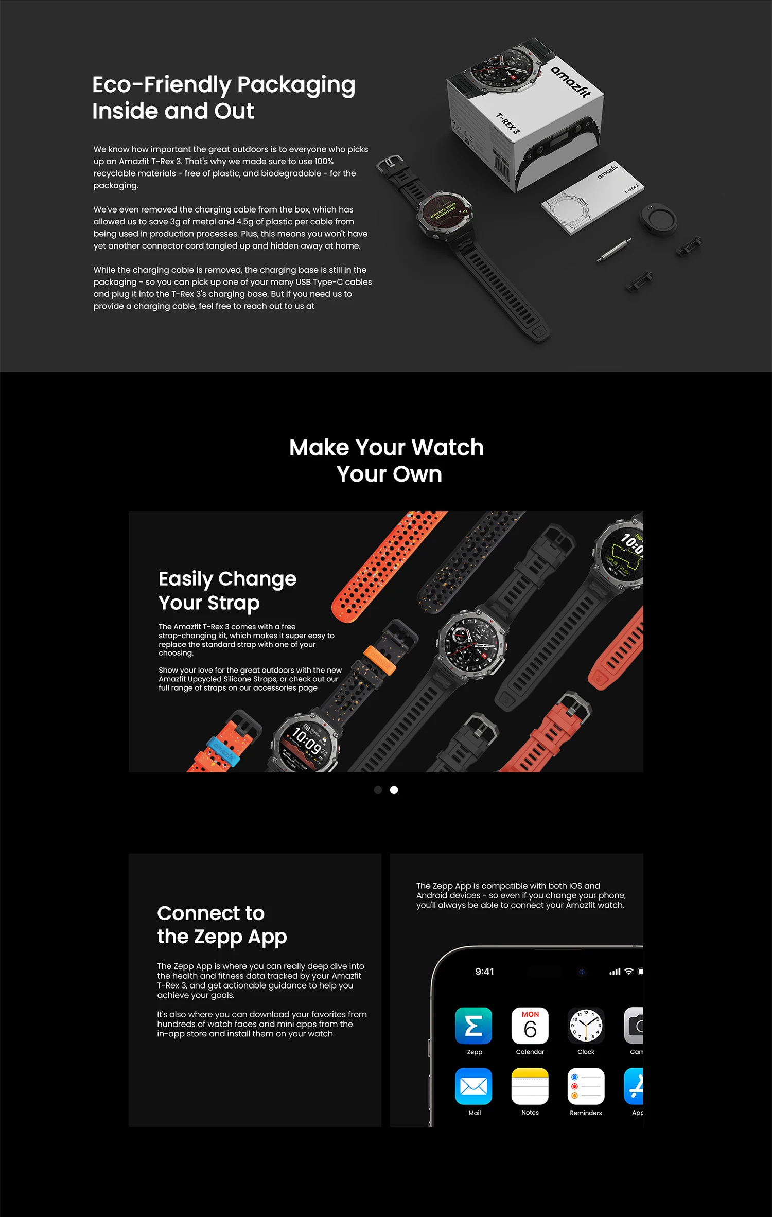 【Mais de 3 semanas de duração da bateria】O relógio inteligente Amazfit T-Rex 3 pode durar 27 dias com uso típico, 42 horas no modo GPS preciso e até 114 horas no modo GPS de longa duração da bateria.Com algumas configurações desabilitadas, o uso do GPS pode durar até 180 horas em longas caminhadas.