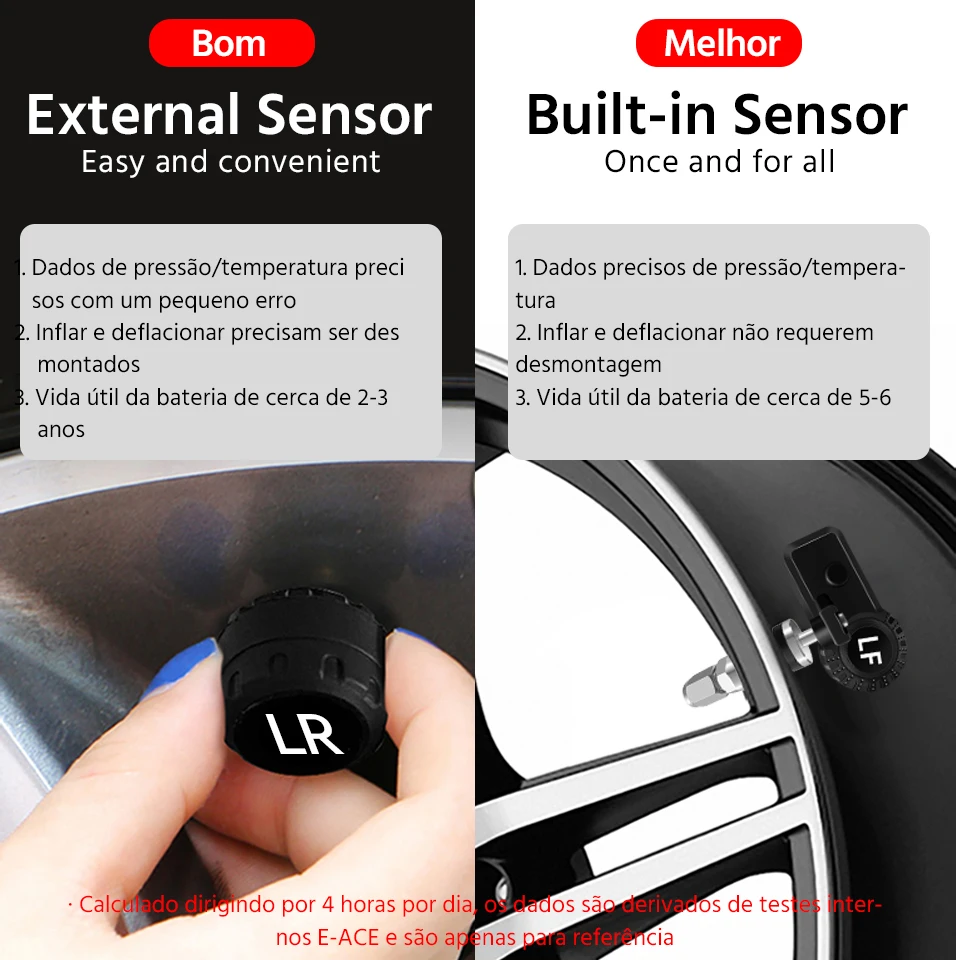 -Display digital LCD colorido, claro para mostrar informações dos pneus