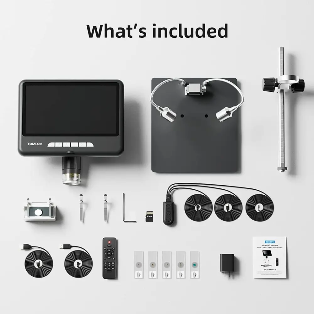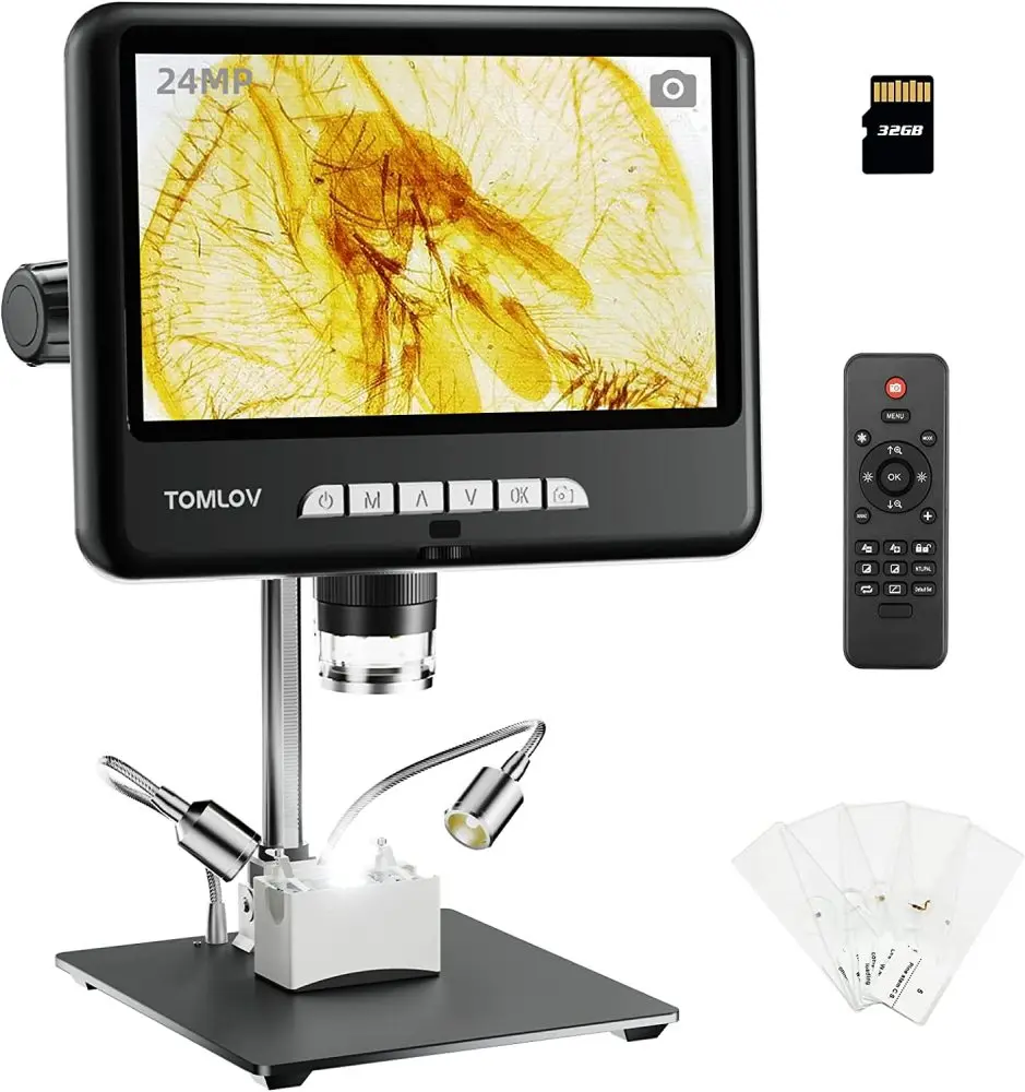 Save Images and Videos with Included 32GB Card–More than a microscope, this Tomlov microscope is capable of recording 2K video and capturing up to 24MP photos with installed 32GB Micro-SD card.Perfect for those who want to record beautiful moments