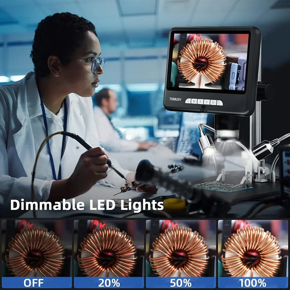 TOMLOV Microscope Digital 1200X 10.1" IPS 2K HDMI Microscopio Camera 32GB DM402 Pro For Phone Repairing/Coin/Eletronicos Tool